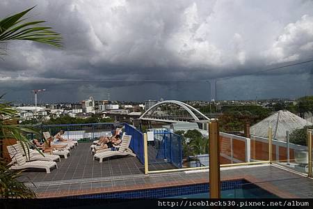 今天天氣不是很好, 望出我的窗外, 就是游泳池與做日光浴的帥哥美女們...